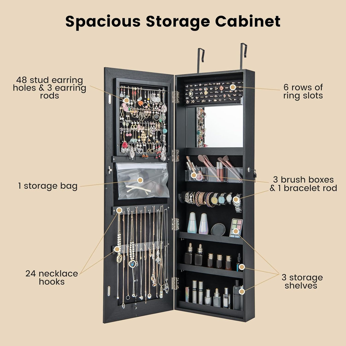 This is way more than just a mirror! It keeps everything organized and safe. I love that I can lock it when I’m traveling or have guests over. The velvet lining feels really luxurious too.